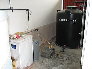 深い井戸は50m、山田地区のような所はわずか7m、しかもすぐ横を川が流れているので「大丈夫かな?」と思いましたが、水質は良好で塩素のみ規定量投入するだけで水質調整は今のところ不要とのこと。