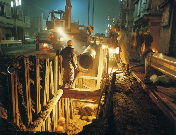 1980年代の水道配管埋設工事風景 今は、配管の更新が必要な時代となりました。